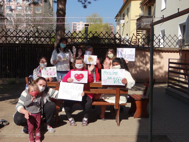 Tak vypadaly poslední týdny našich kolegyň v azylovém domě Diakonie v Litoměřicích. Aby ochránily zdraví dětí i maminek, dobrovolně se rozhodly střídat po týdenních směnách, kdy v Domově bydlely. Odpadlo tak dojíždění MHD i pohyb na veřejnosti, který by mohl znamenat riziko. K opatření se přidaly i maminky - kdo mohl, zůstal doma, a nakupovat se jezdilo jen jednou týdně, pro všechny společně. Rozhodně se ale zvýšily nároky na trpělivost a vynalézavost pracovnic Domova i maminek - představte si, že musíte zabavit dvacet dětí v izolaci a ještě stíhat online školu.